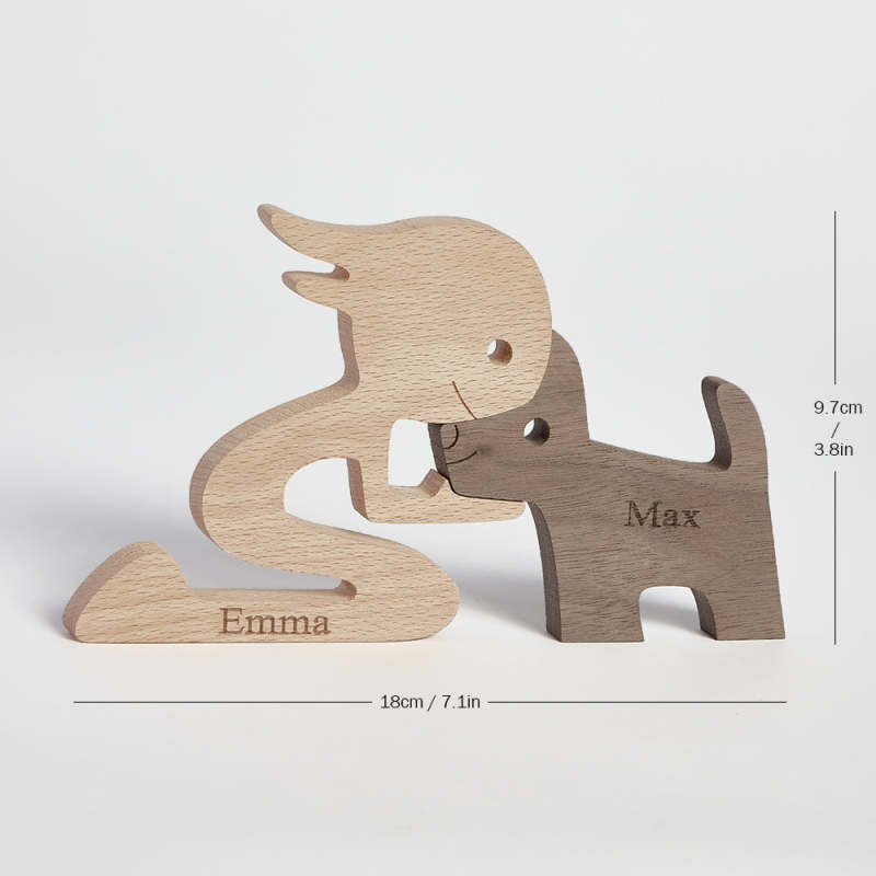 Woman and Dog Wooden Pet Carving Blocks Custom Name Table Decor Gifts for Pet Lovers