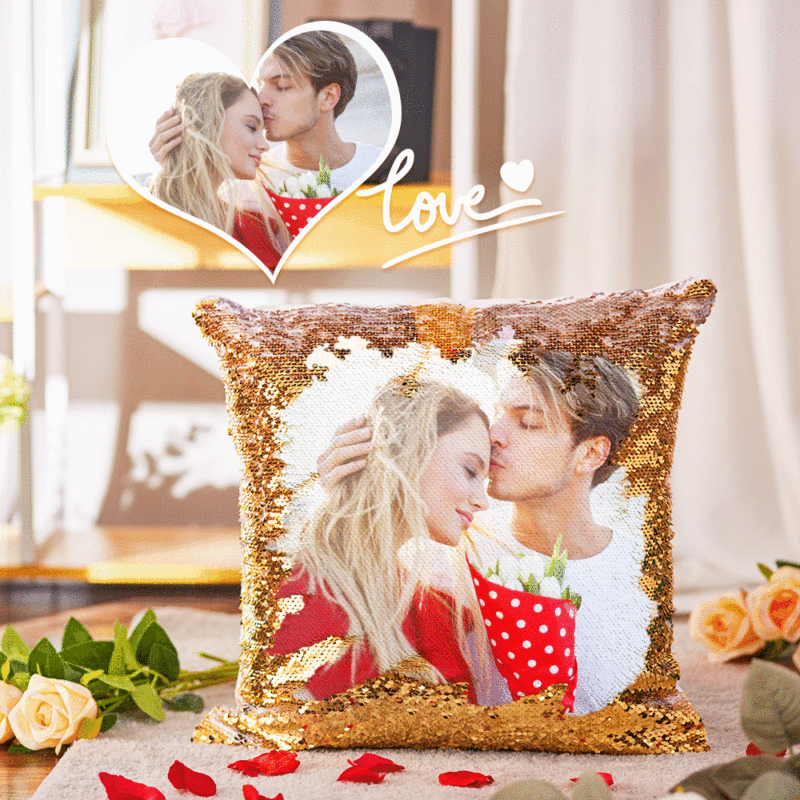Custom Photo Magic Sequins Pillow, Sequin Picture Pillow, Gifts for Family, Personalized Glitter Pillow with Hidden Picture