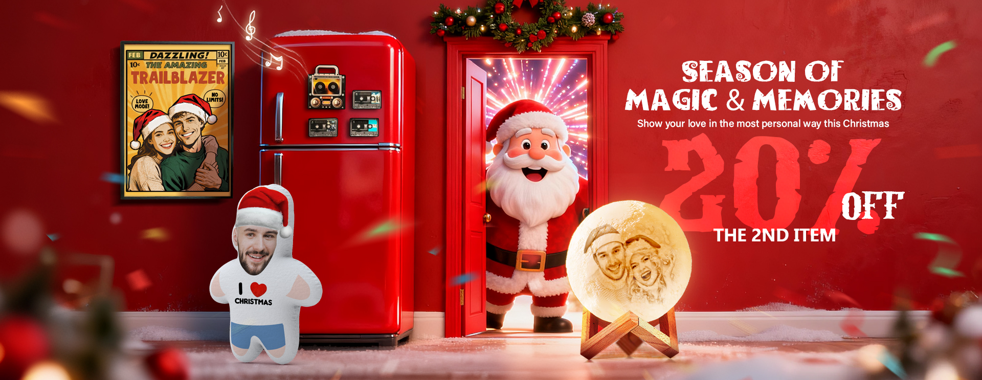 BUY 2 20% OFFCustom Retro Cassette Music Fridge Magnet in Christmas Style with Preview | Auto-Play Cassette Tape | Rechargeable | Vintage Tape Style Christmas Gift for Couples & Music LoversBUY 2 20% OFF -