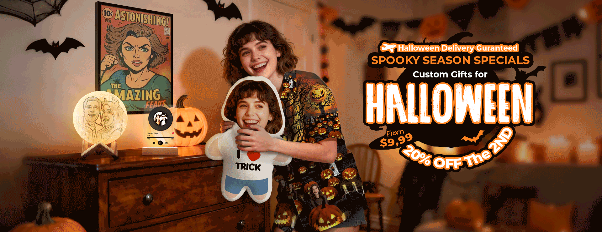 Halloween Couple Custom Photo Lamp 3D Printed Engraved Moon Lamp 2 Colors20% OFF THE 2ND -