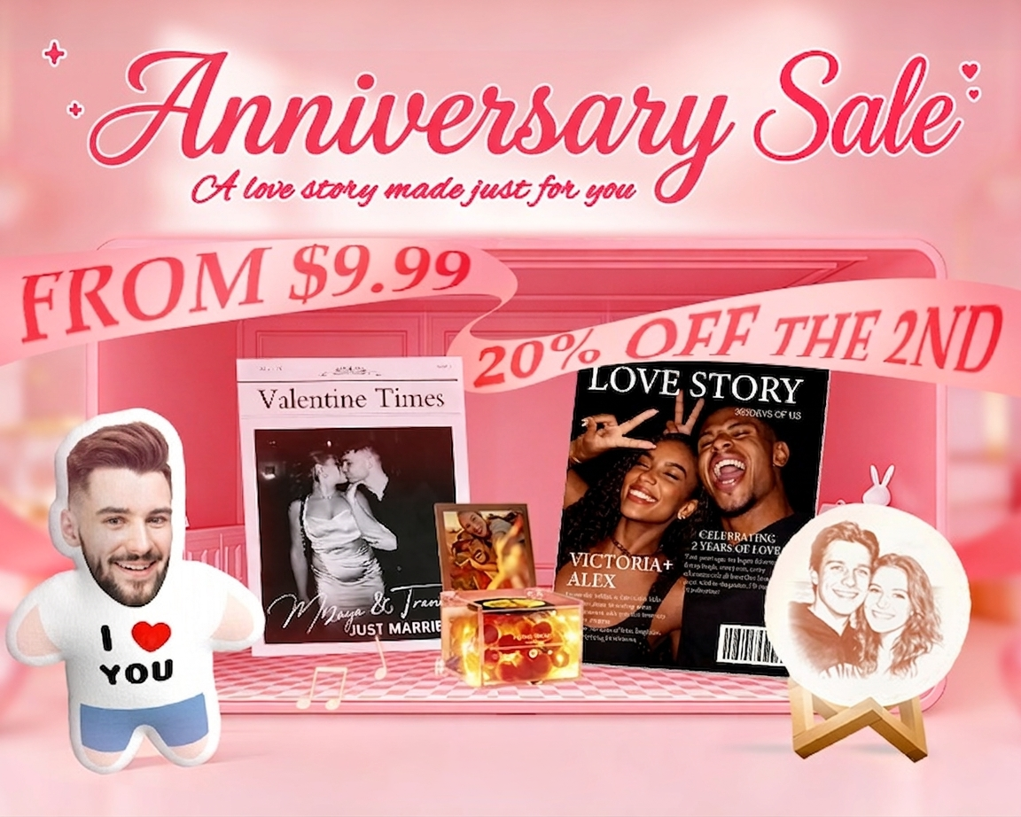 Actual Product Video in 2nd Photo Position 20% OFF THE 2NDPersonalized LOVE STORY Magazine for Couples on Anniversary20% OFF THE 2ND -
