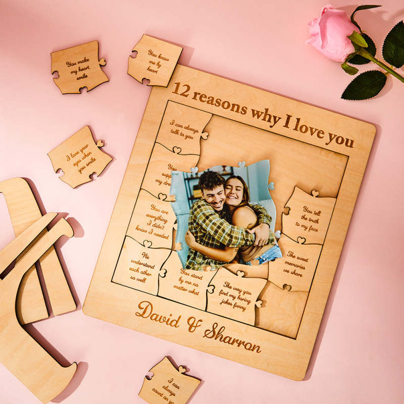 12 Reasons Why I Love You Custom Photo Name Acrylic Wooden Puzzle