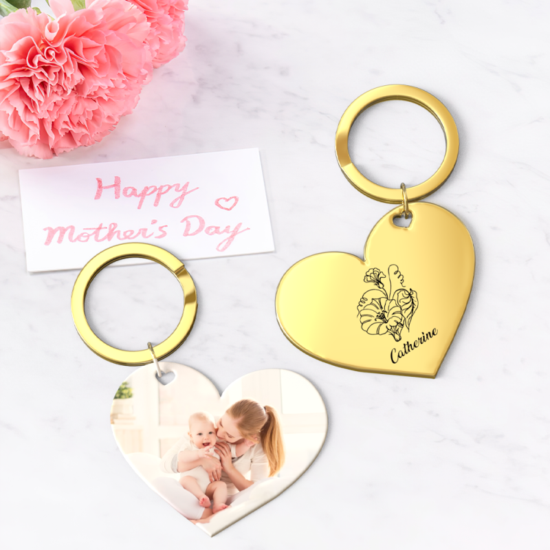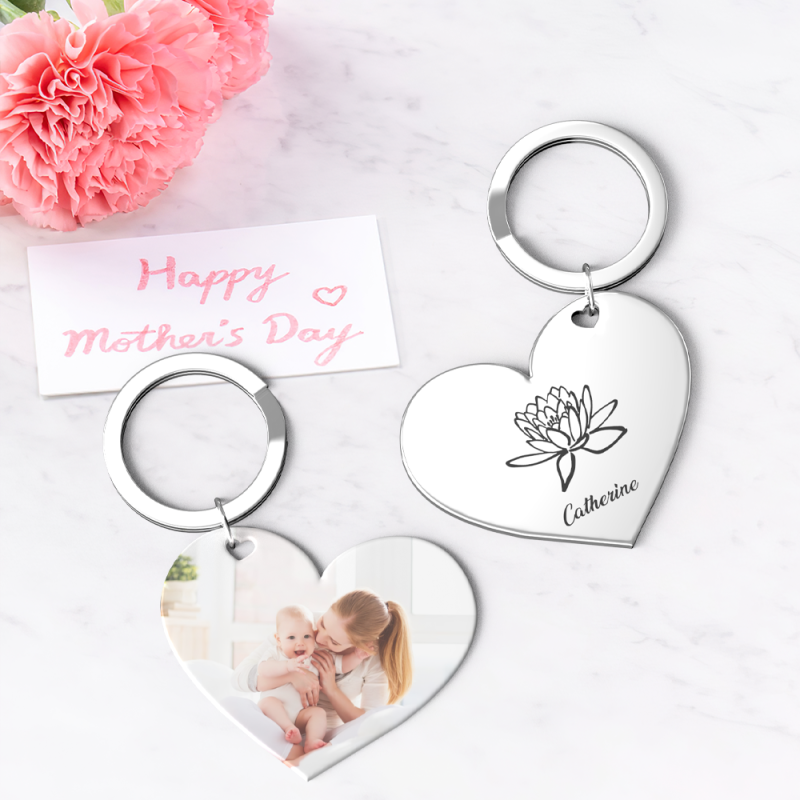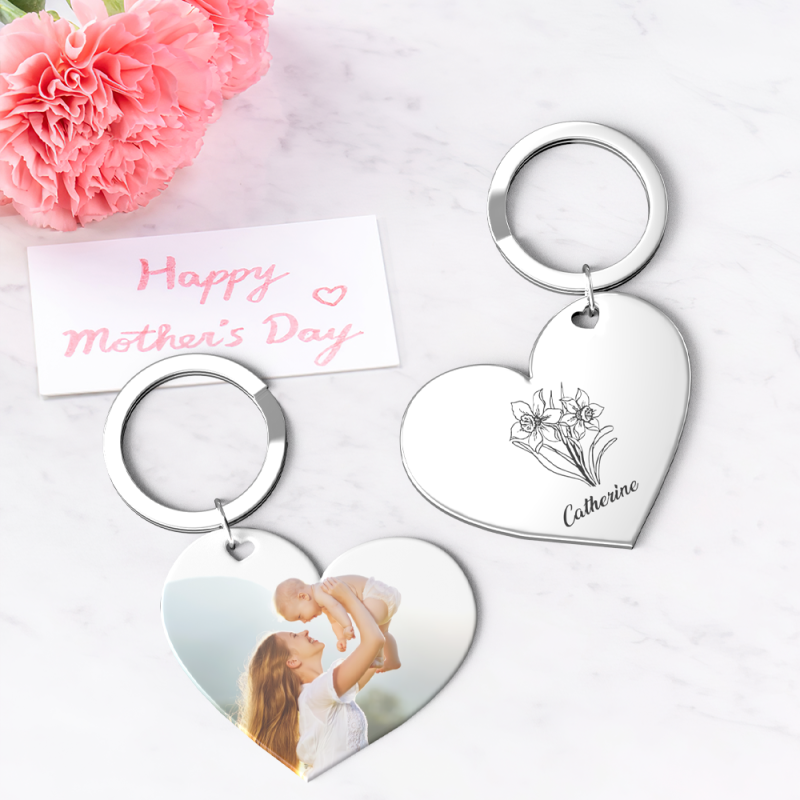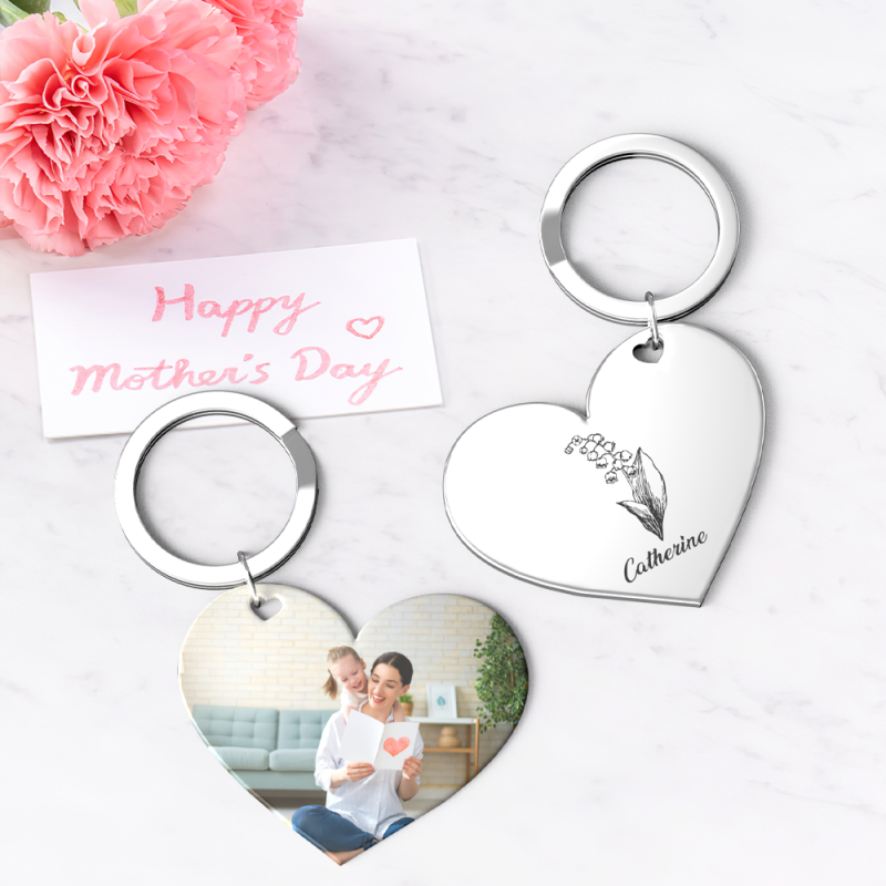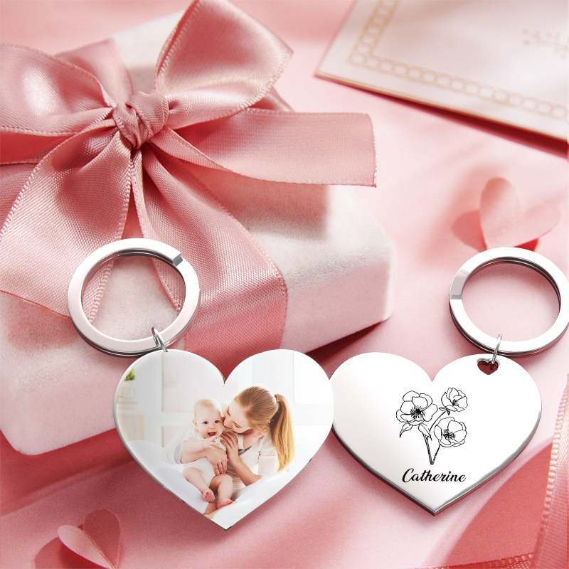 Birth Flower Keychain Custom Photo Keychain Mothers Day Gifts for Mom