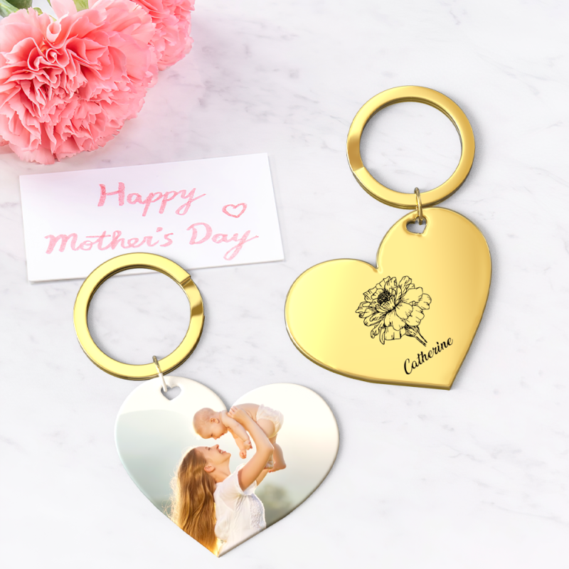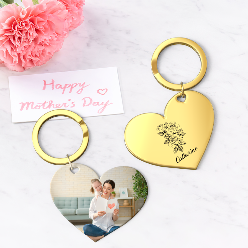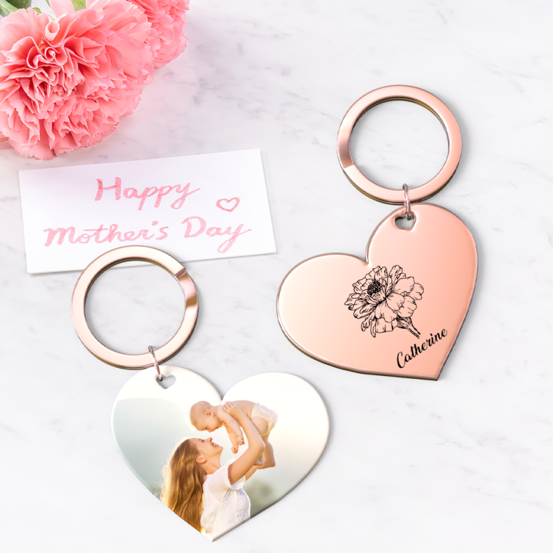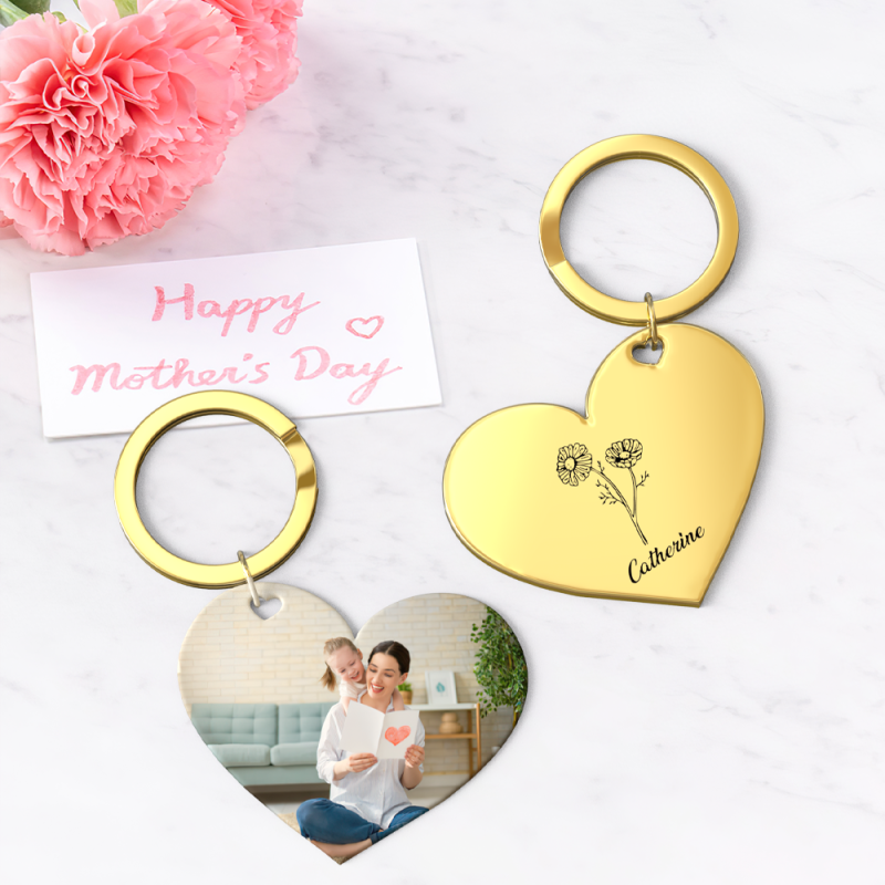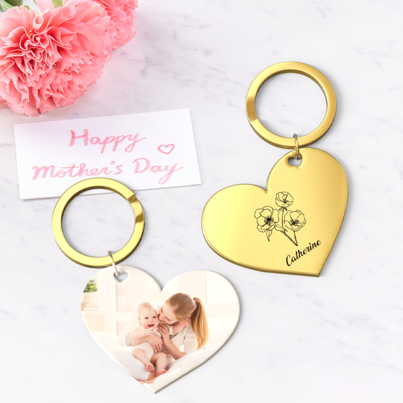 Birth Flower Keychain Custom Photo Keychain Mothers Day Gifts for Mom