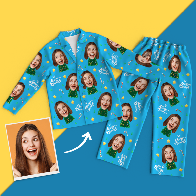 Christmas Gifts Custom Face On Pajamas Christmas Tree Pajamas