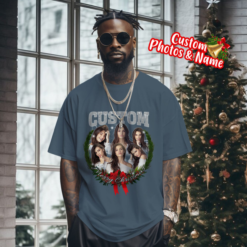 Comfort Colors Christmas Custom Bootleg Shirt, Photo Christmas Matching Shirt, Personalized Family Face Matching Shirt, Christmas Gift Idea