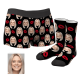 Kiss Couple Men's Custom Face Boxer Shorts And Socks Set