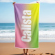 Custom Beach Towel with Name Ombre Multi Color Beach Towel Personalized Pool Towel Vacation Gift Girl Trip Gift