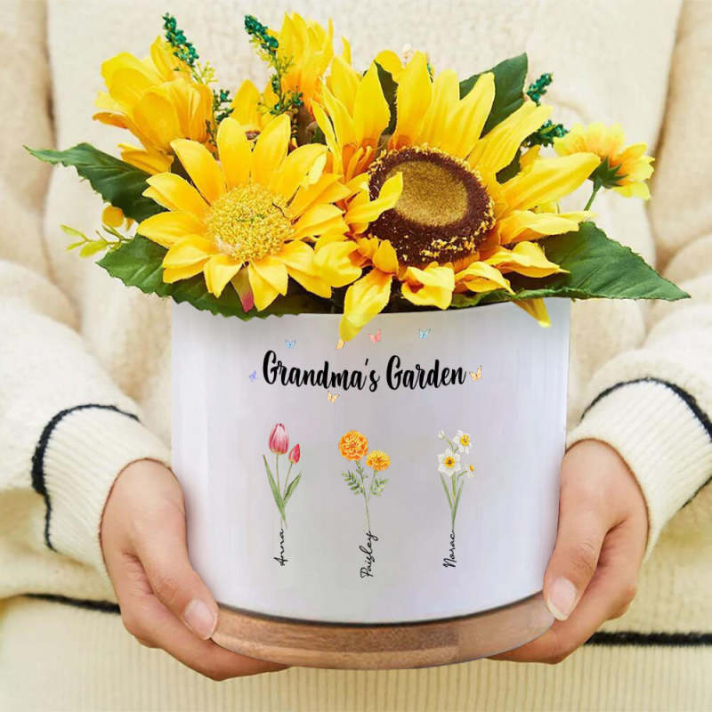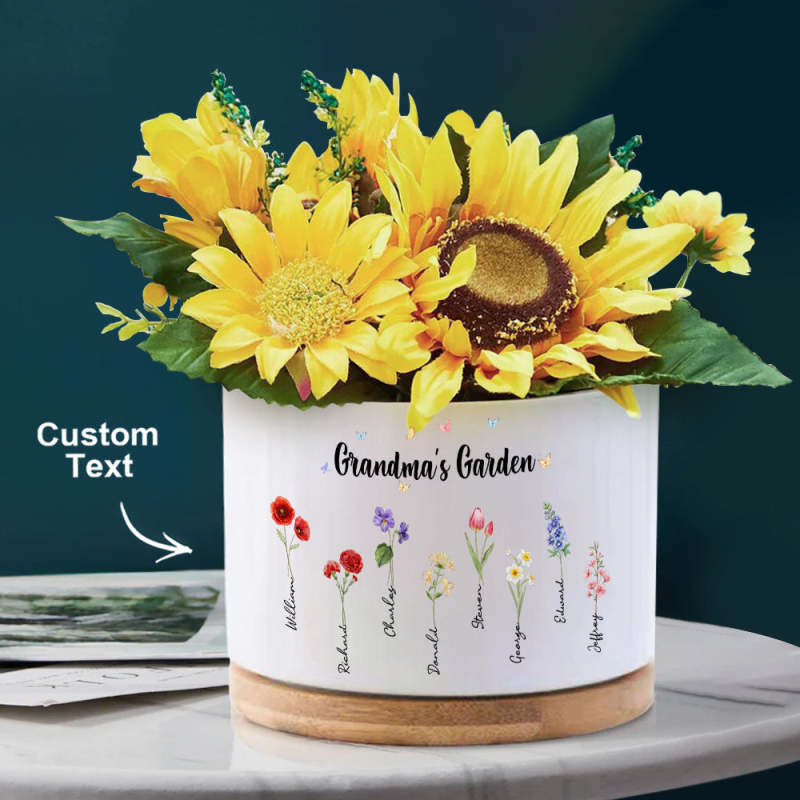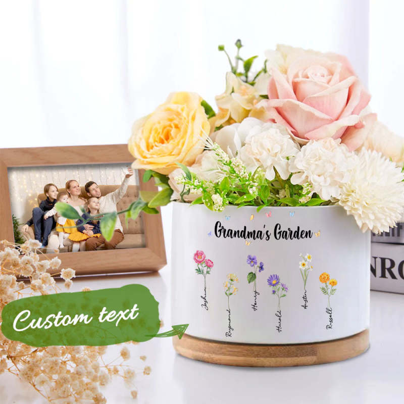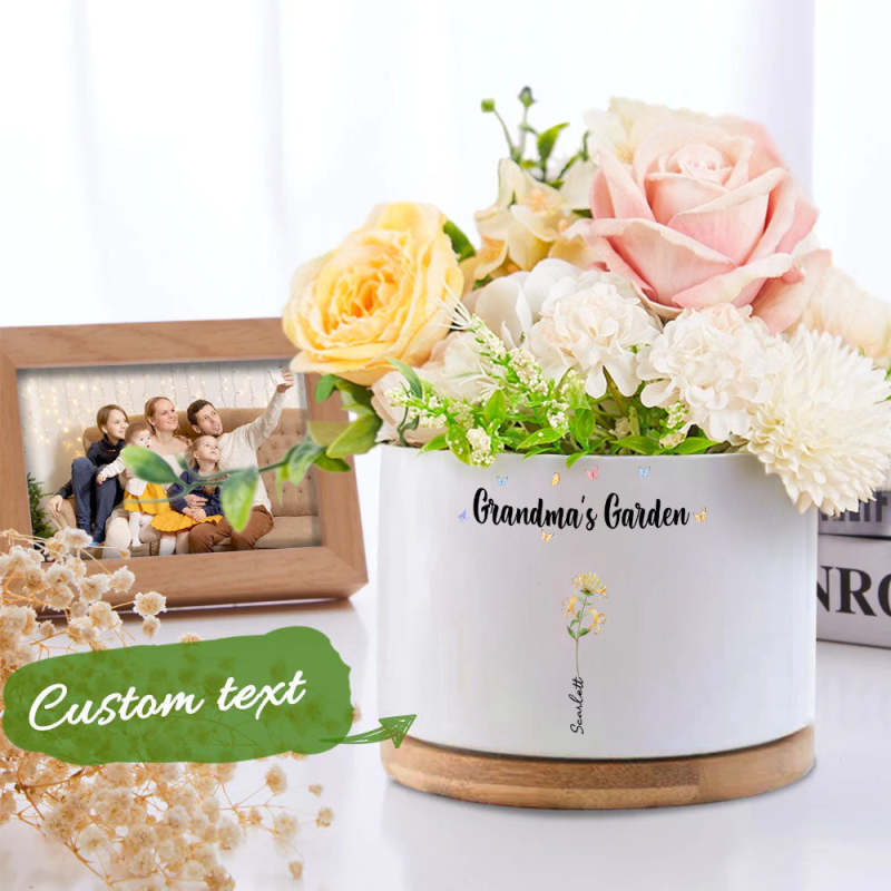 Custom Birth Flowers Planter Ceramic Pot Personalized Name Mom's Gifts