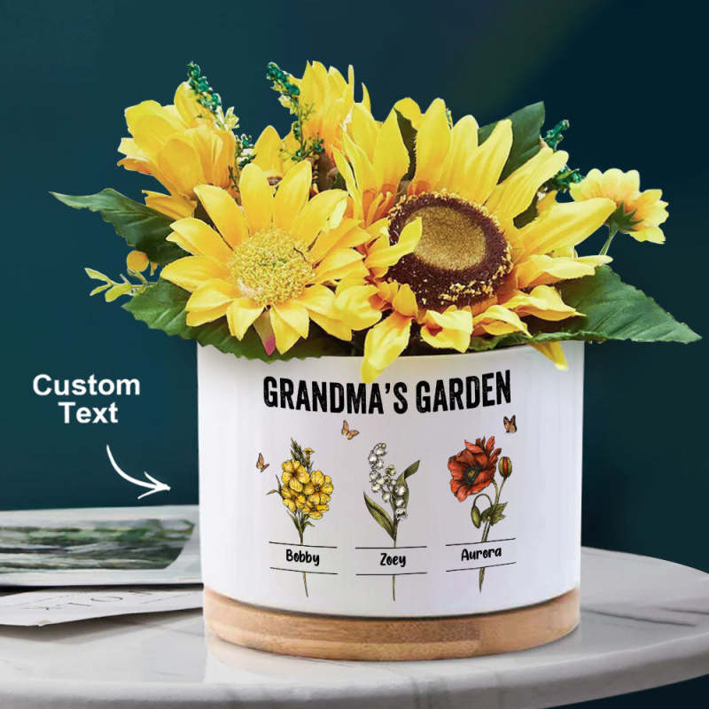 Custom Birth Flowers Planter Pot Personalized Name Ceramic Succulent Plant Pot Gifts for Mom