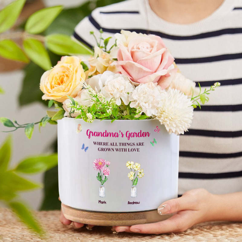 Custom Birth Flowers Pot Personalized Name Ceramic Plant Pot Mother's Day Gifts