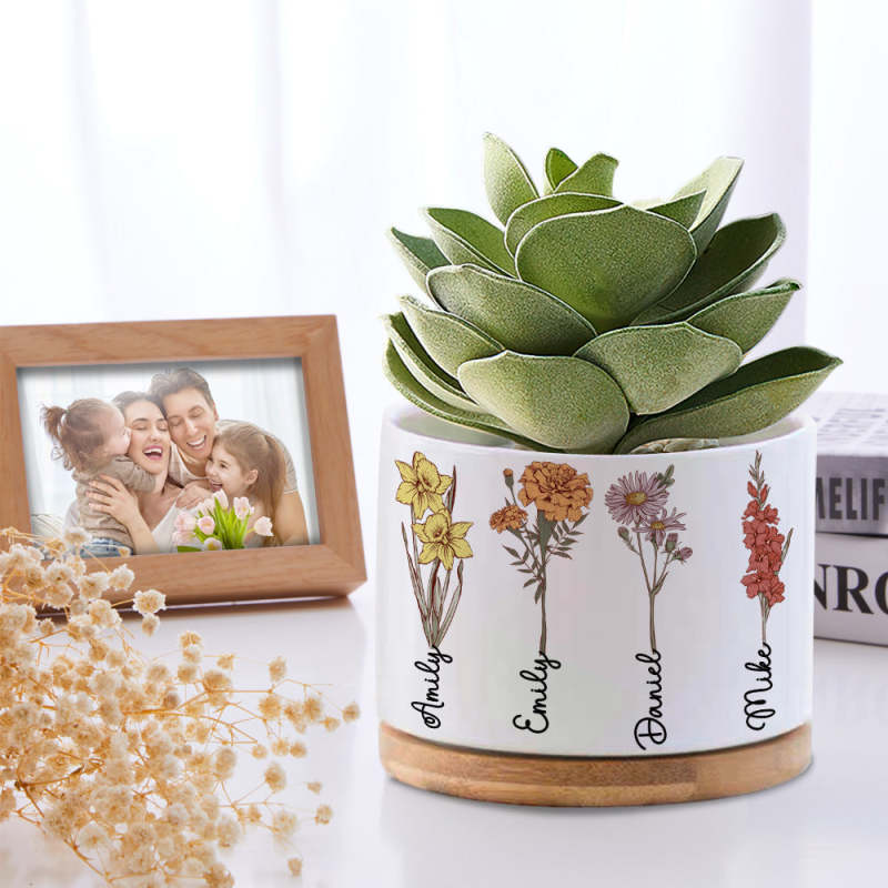 Custom Birth Month Flowers Planter Pot Personalized Name Ceramic Succulent Plant Pot