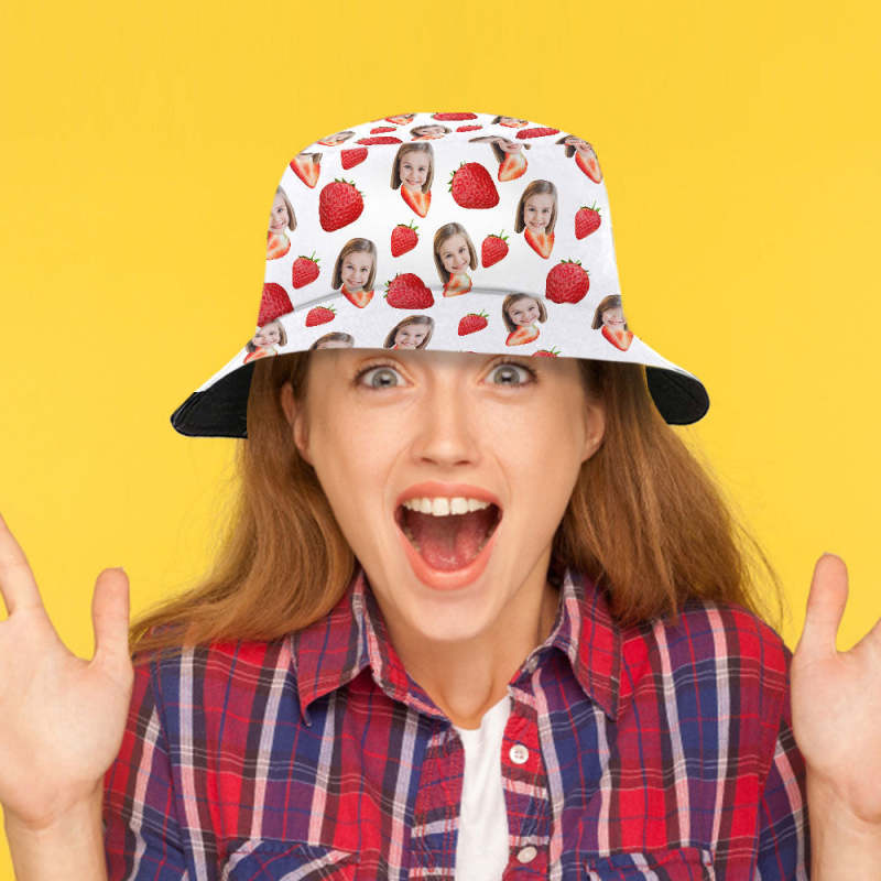 Custom Bucket Hat Personalised Face Strawberry Bucket Hat Summer Wide Brim Fisherman Hat Gifts