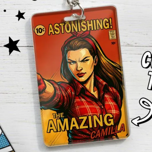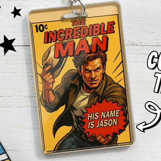 Custom Vintage Retro Comic Book Keychain DIY Hero Style Keychain | Personalized Vintage Retro Comic Key Chain Gift for Friends or Couples