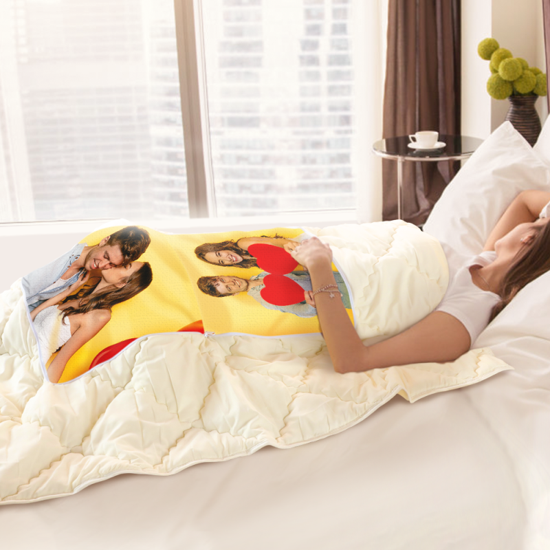 Custom Couple Photo Quillow - Multifunctional Throw Pillow and Quilt 2 in 1 - 47.25"x55.10"