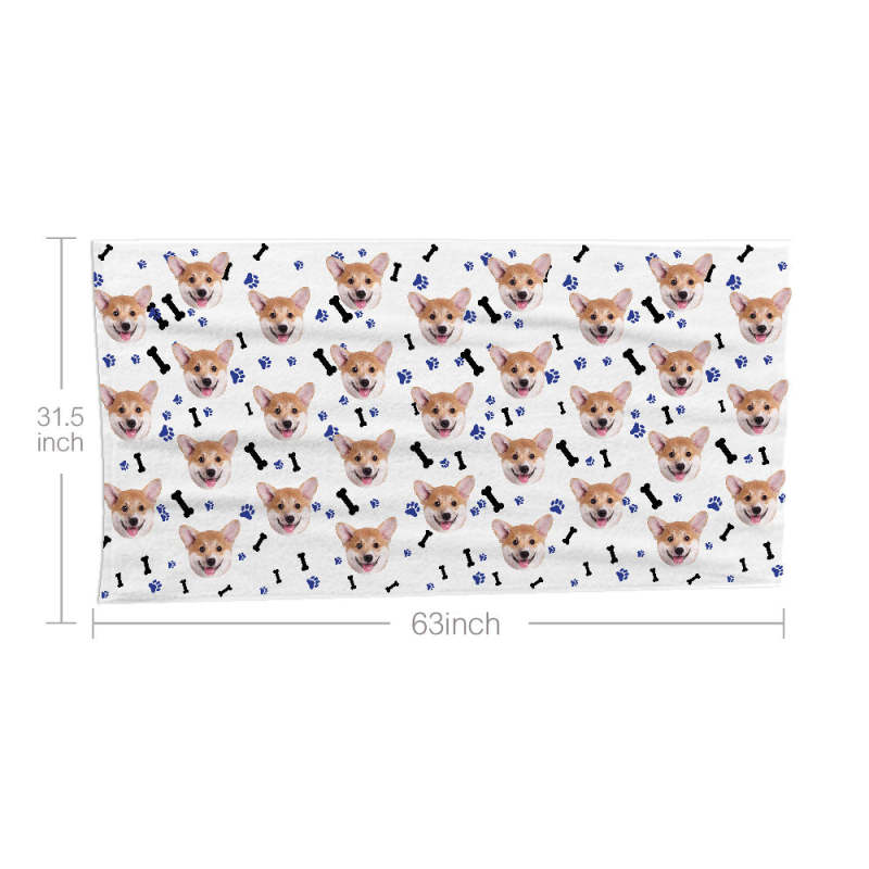 Custom Dog Faces Paw and Bone Towel Personalized Photo Towel Funny Gift