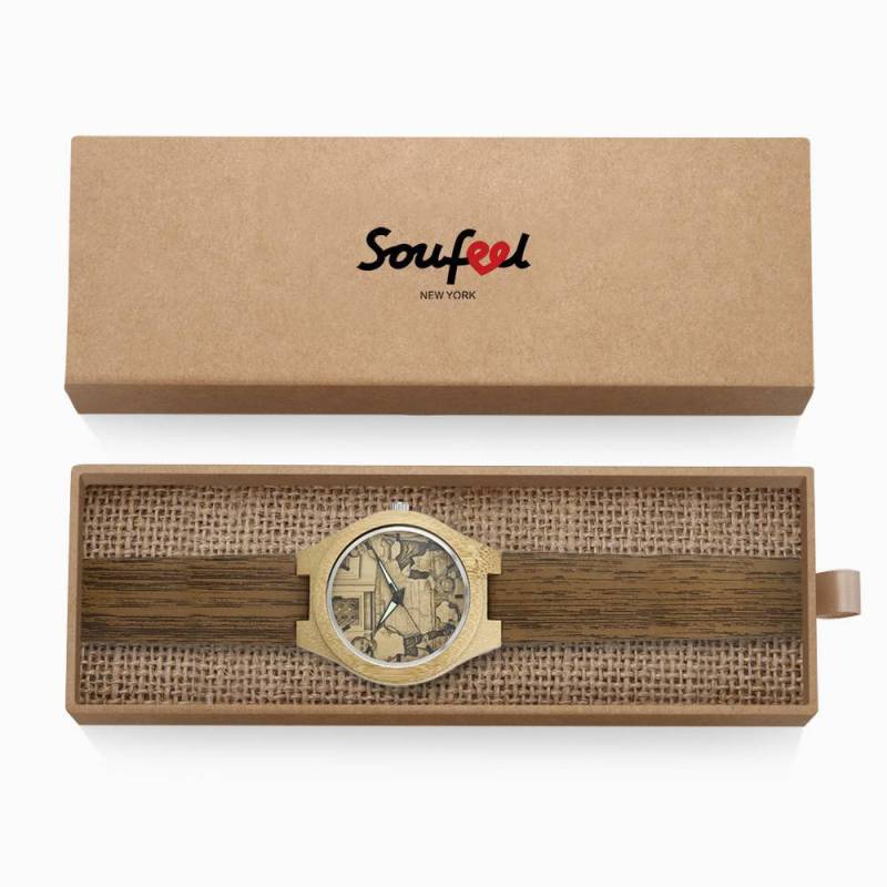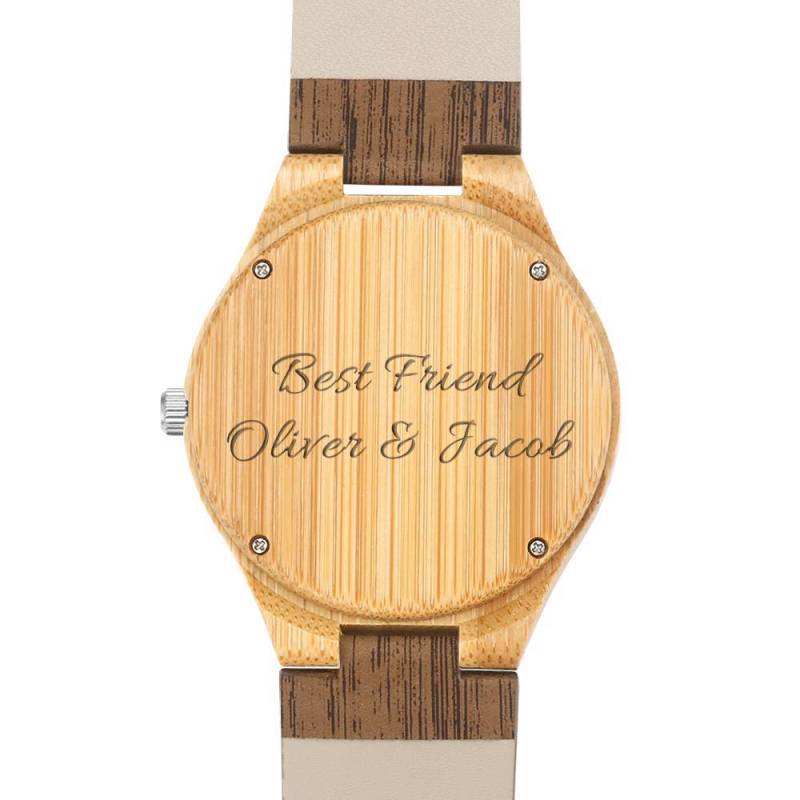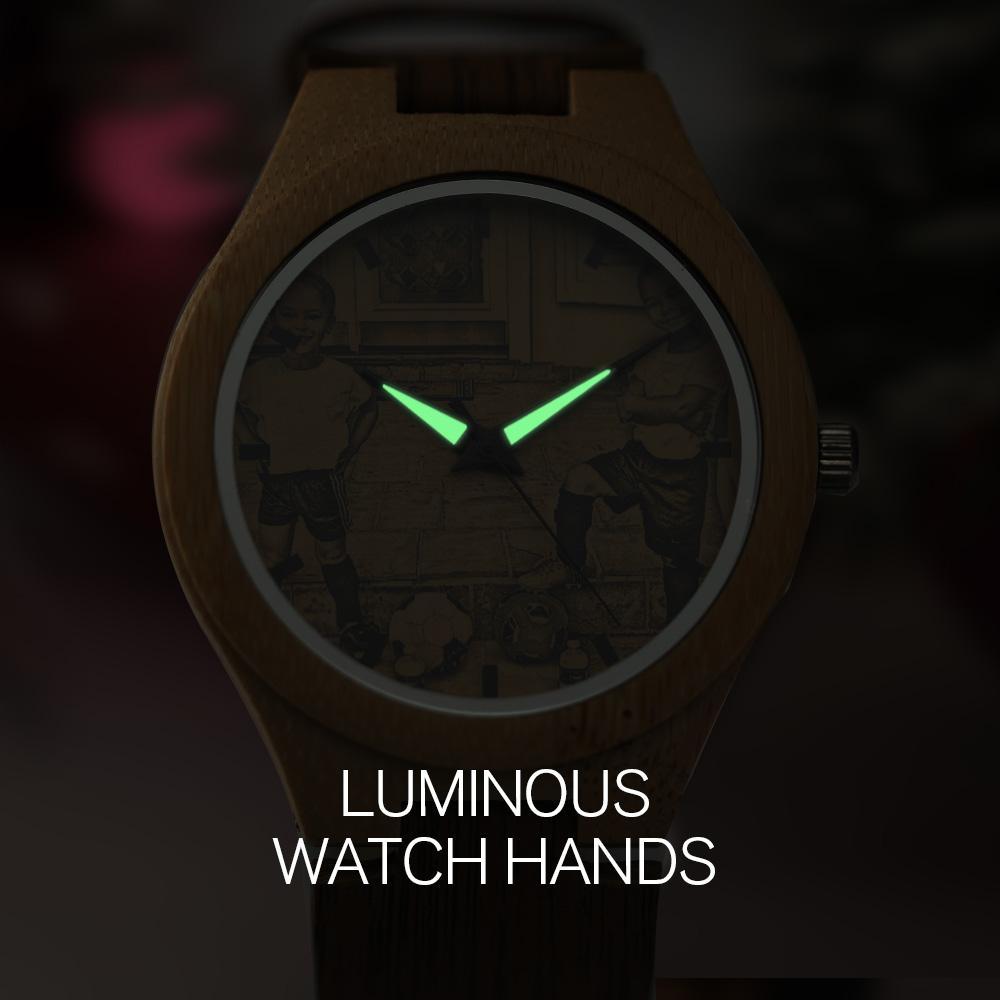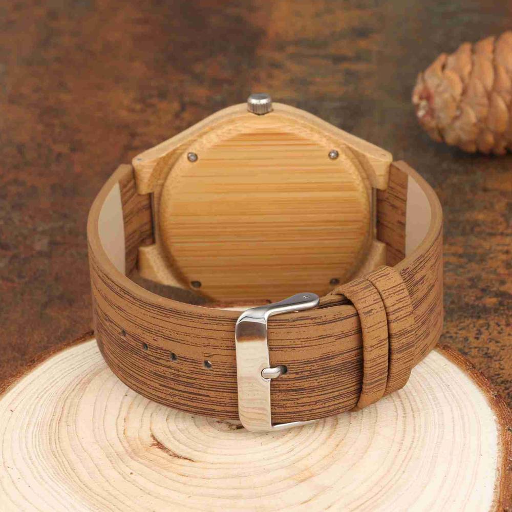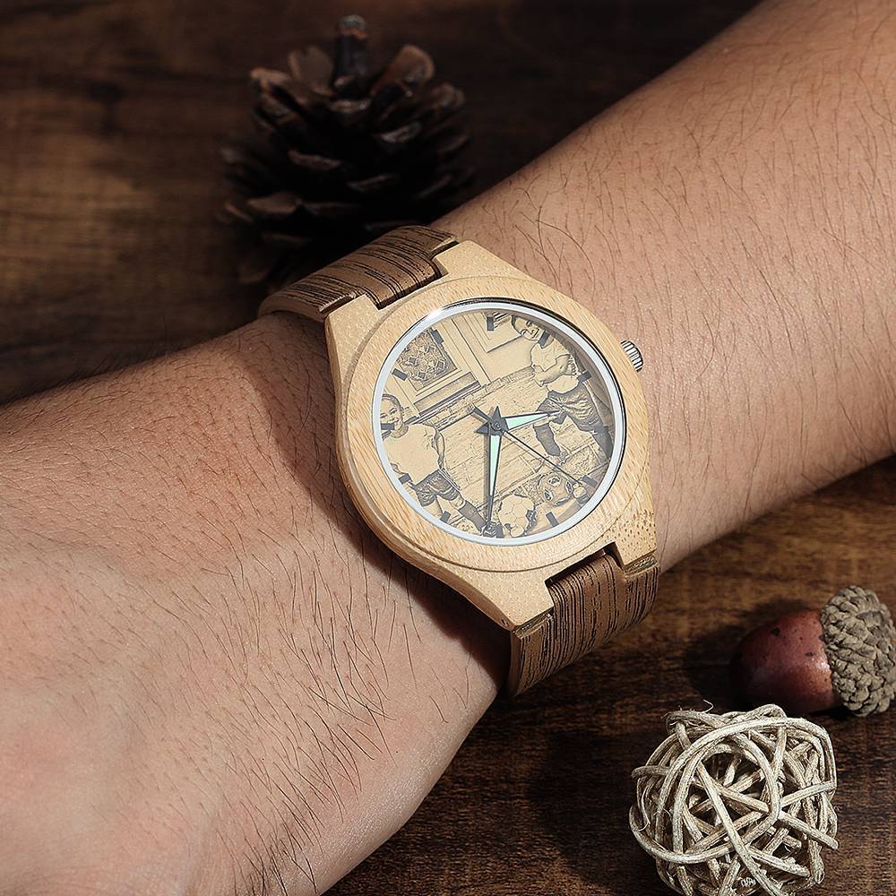 Custom Engraved Bamboo Photo Watch with Wooden Leather Strap