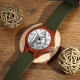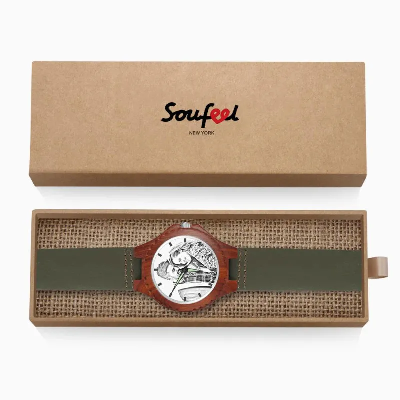 Gifts for Him Wooden Watches Custom Engraved Wood Photo Watch Dark Green Leather Strap
