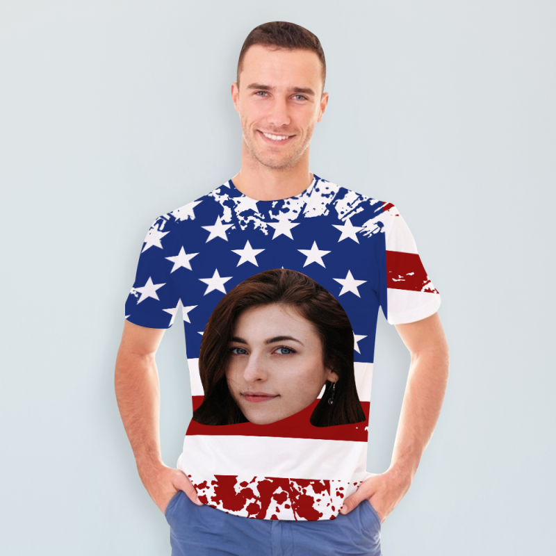 Custom My Face T-shirt American Flag Tee