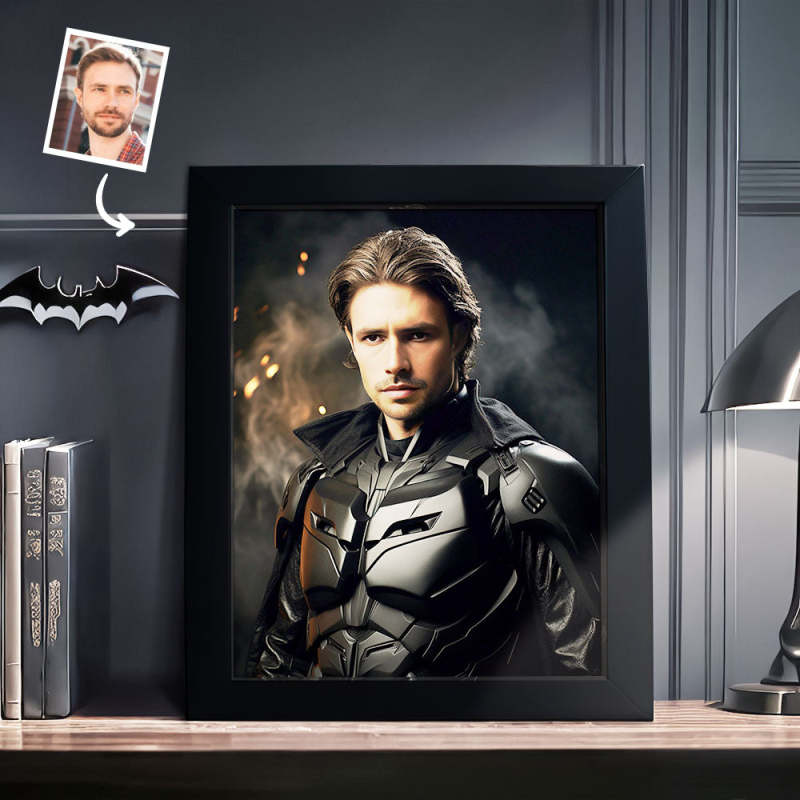 Custom Face Batman Personalized Photo Portrait Wooden Frame Gifts for Kids