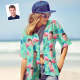 Custom Face Hawaiian Shirt Flamingo Tropical Shirt Couple Outfit ALL Over Printed Green and Palm Leaves