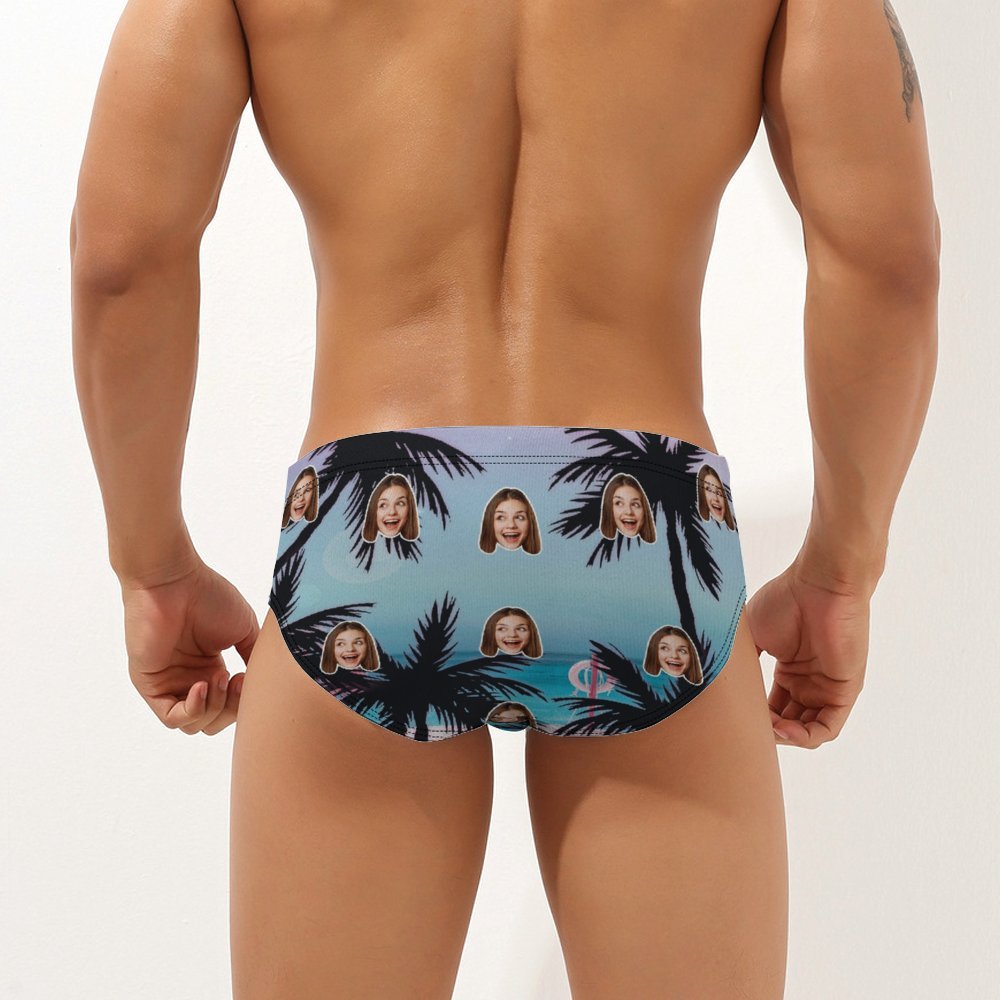 Custom Face Hawaiian Style Men's Swimming Trunks Personalised Palm Triangle Swim Briefs