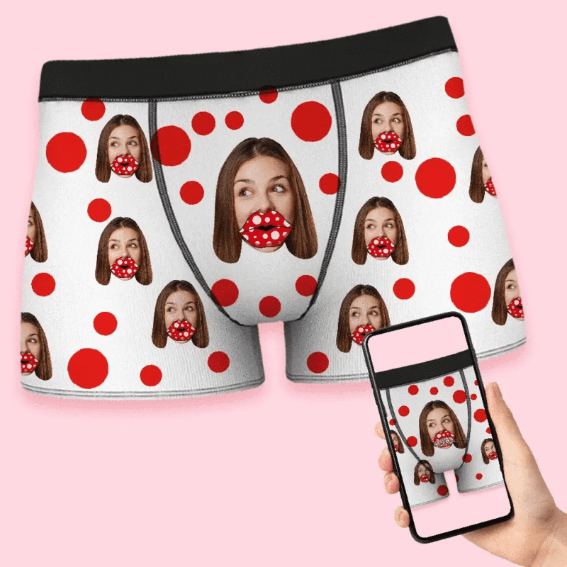 Custom Face Lips Boxers AR View Personalized Boxer Shorts Valentine's Day Gift For Lover