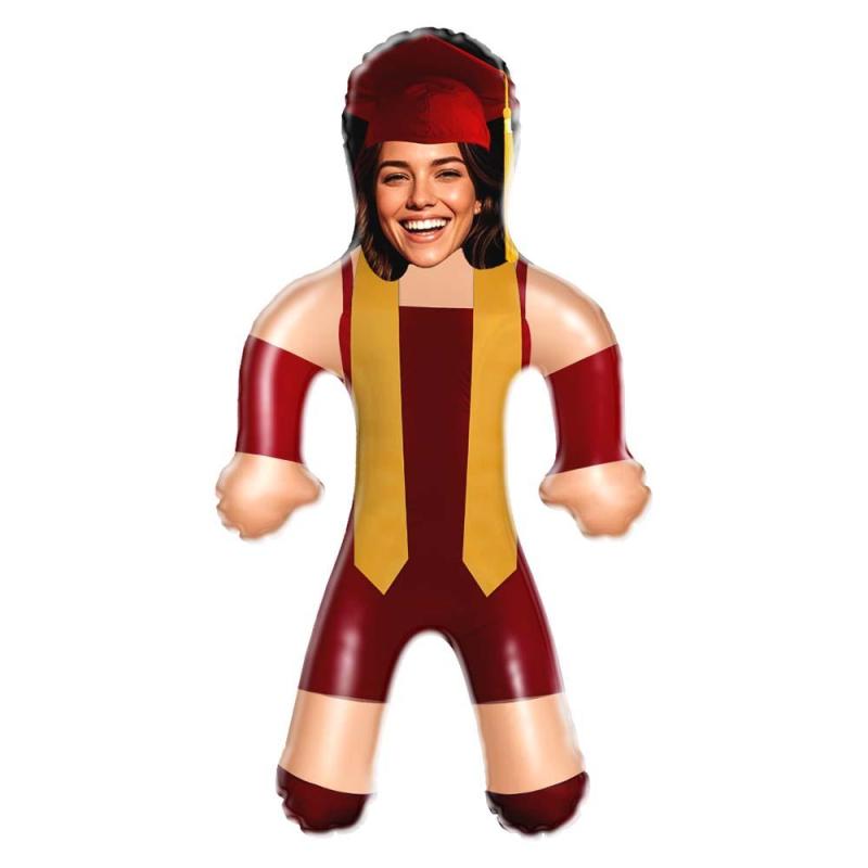 Custom Face Maroon & Gold Graduation Air Minime Doll Custom Inflatable Face Gift Funny Blow Up Doll