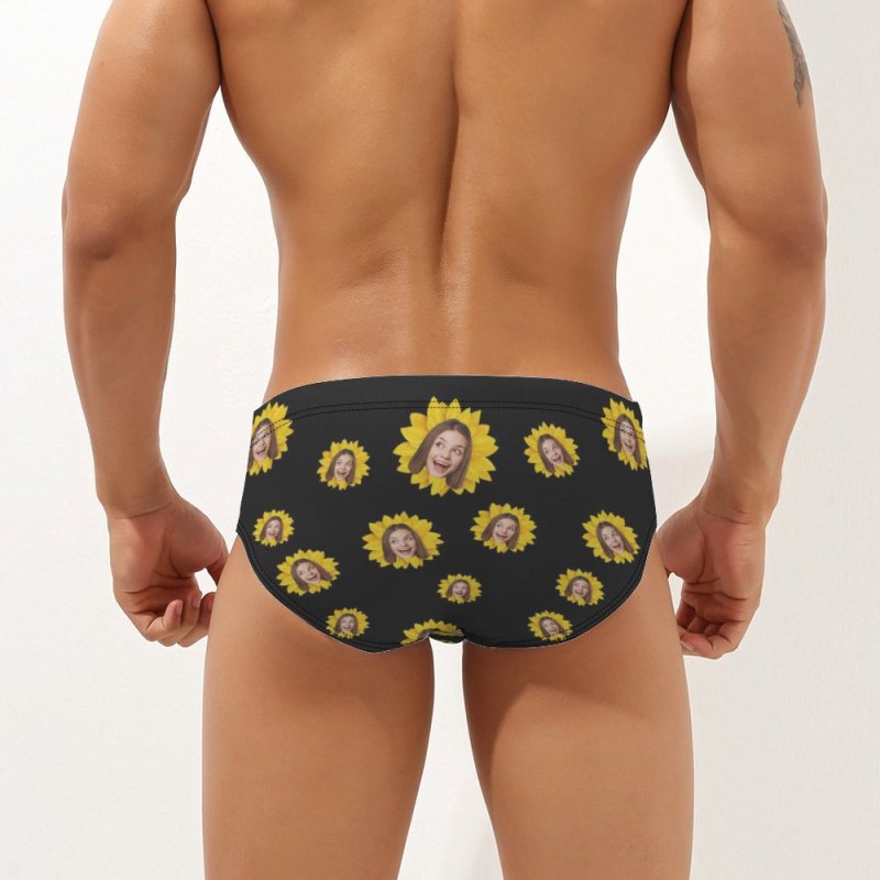 Custom Face Men's Swimming Trunks Personalised Sunflower Triangle Swim Briefs