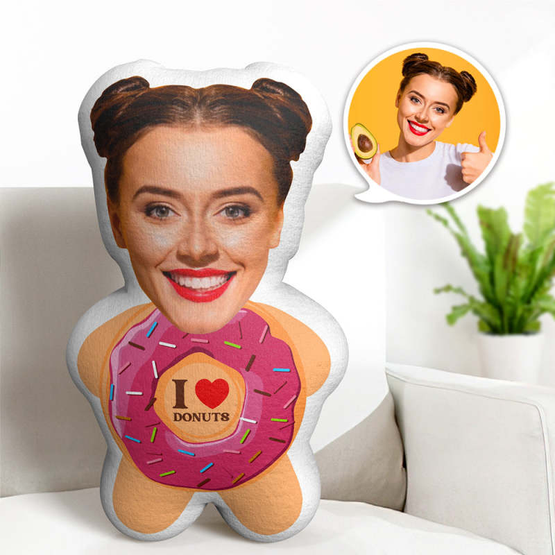 Custom Face Minime Pillow I Love Donuts Personalized Photo Minime Doll Stuffed Toys