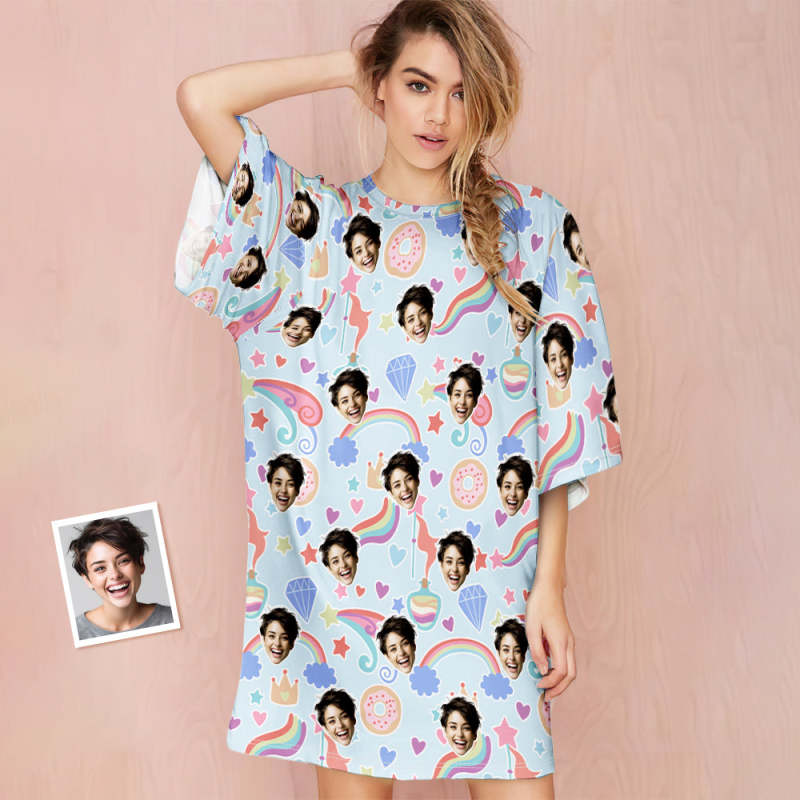 Custom Face Nightdress Personalized Women's Oversized Nightshirt Dream Girl Colorful Gift