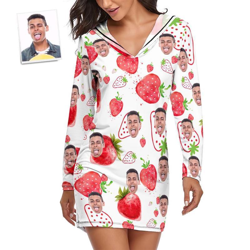 Custom Face Pajamas Women's Pajama Sets Long-sleeved Dress Summer Sleepwear - Strawberry