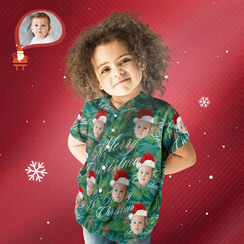 Custom Face Personalized Merry Christmas Kid's Hawaiian Shirt All Over Print Leaves