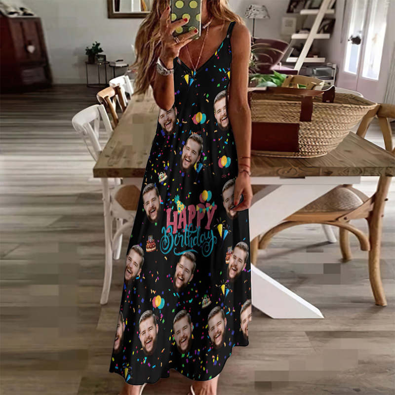Custom Face Streamer Unique Birthday Gift Long Dress And Shirt Couple Outfit Surfing Hawaiian Style Surfing Hawaiian Style