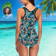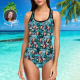 Custom Face Swimwear Women's Photo Slip One Piece Swimsuit Gift For Her - Coulorful Leaves