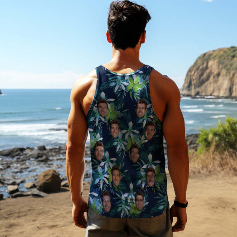 Custom Face Tank Tops Men's Sleeveless Shirt Leaves Petal