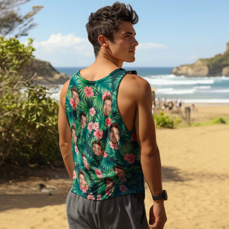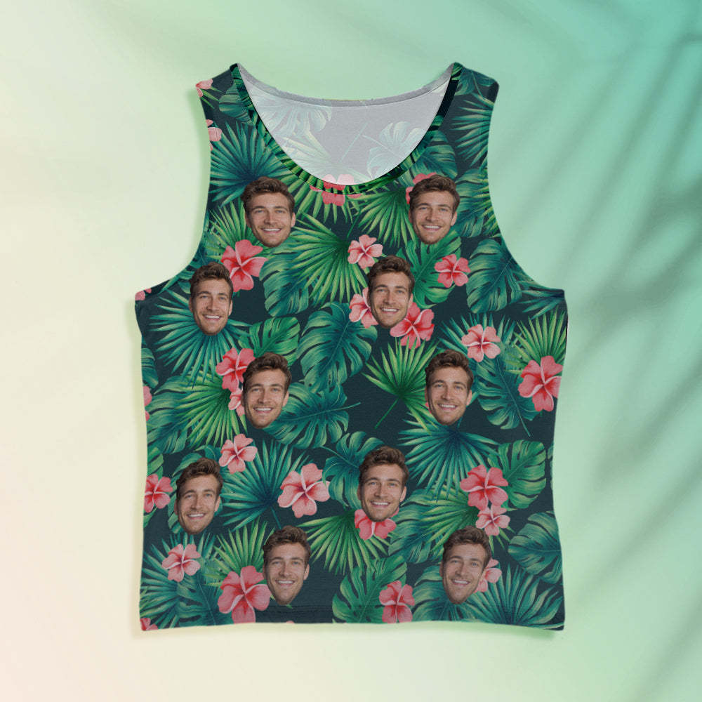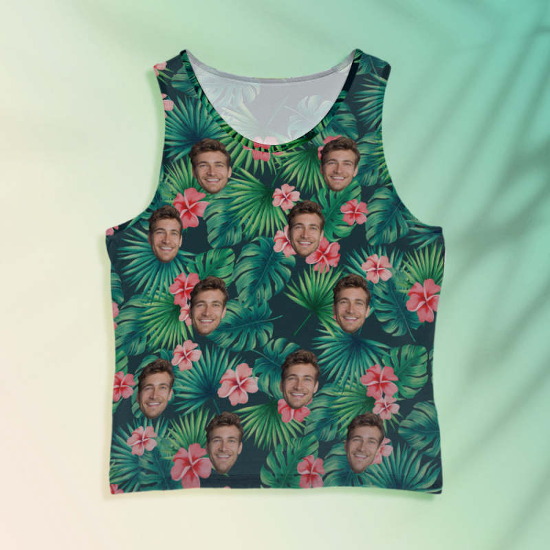 Custom Face Tank Tops Men's Sleeveless Shirt Red Flowers