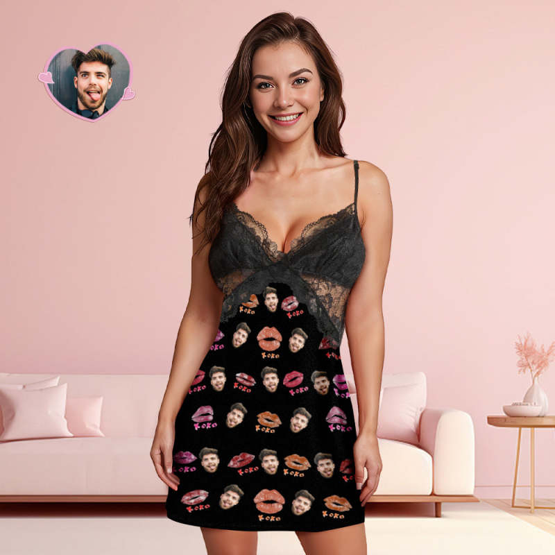 Custom Face Women Lace Sleepwear XOXO Personalized Photo Nightwear Valentine's Day Gift