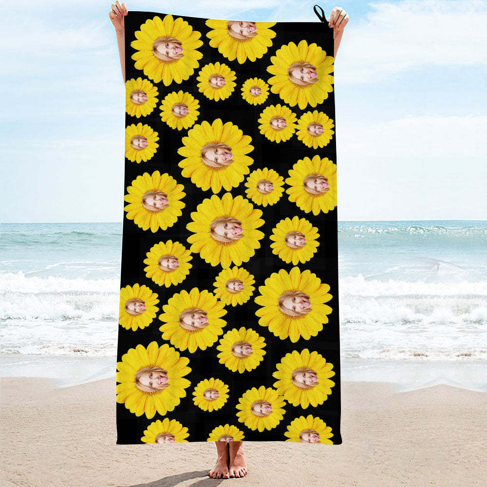 Custom Faces Sunflower Towel Personalized Photo Towel Funny Gift