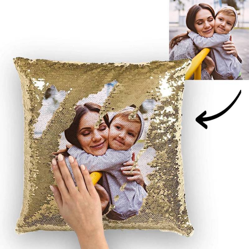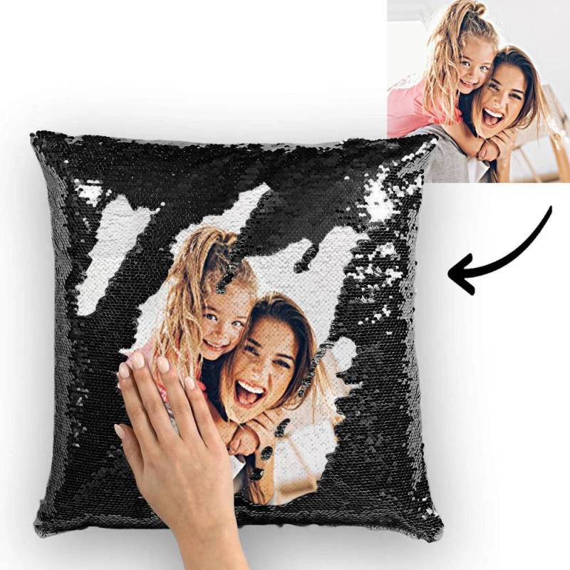 Custom Family Photo Magic Sequins Pillow Multicolor Shiny 15.75''*15.75''