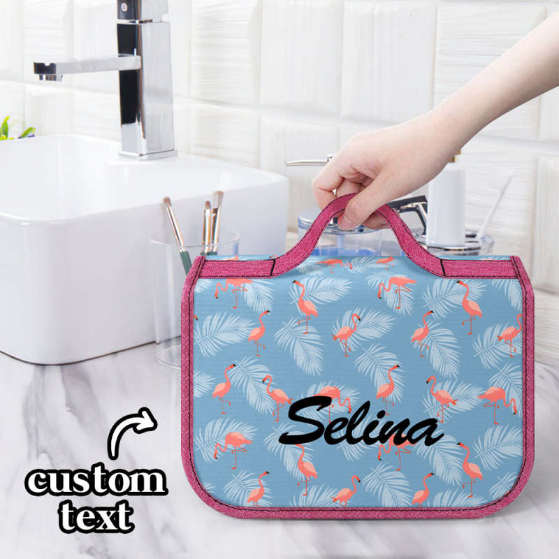 Custom Hanging Toiletry Bag Personalized Flamingo Cosmetic Makeup Travel Organizer for Men and Women