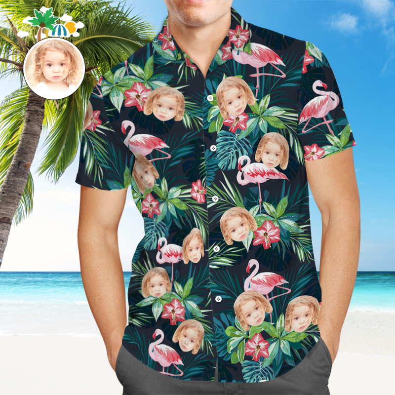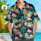 Custom Hawaiian Shirt with Face Custom Dog Face Shirt Leaves & Flamingo Button Down Shirts Gifts for Pet Lover