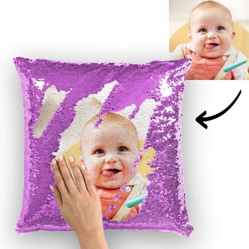 Custom Love Baby Photo Magic Sequins Pillow Multicolor Shiny 15.75''*15.75''