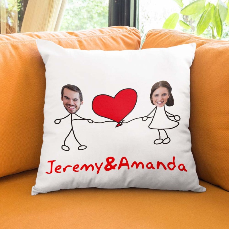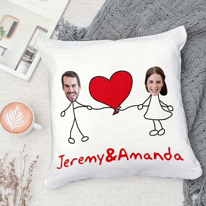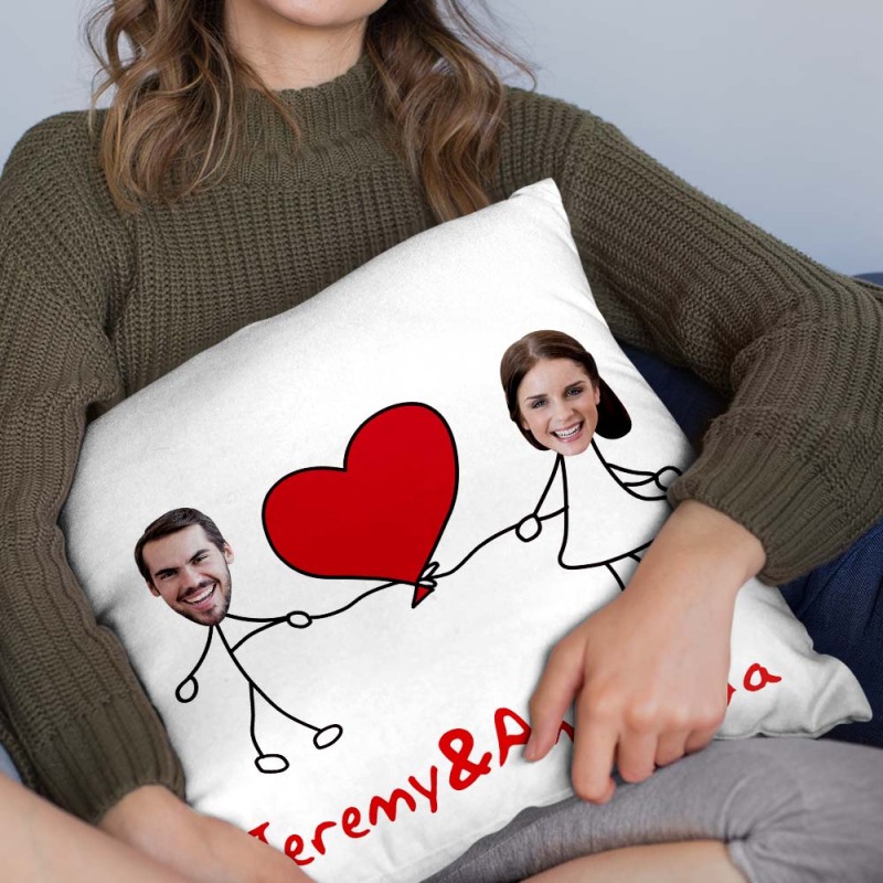 Custom Matchmaker Face Pillow Extra Large Love Heart Personalized Couple Photo and Text Throw Pillow Valentine's Day Gift