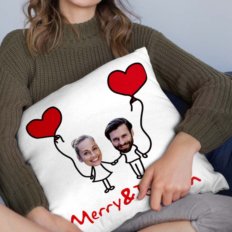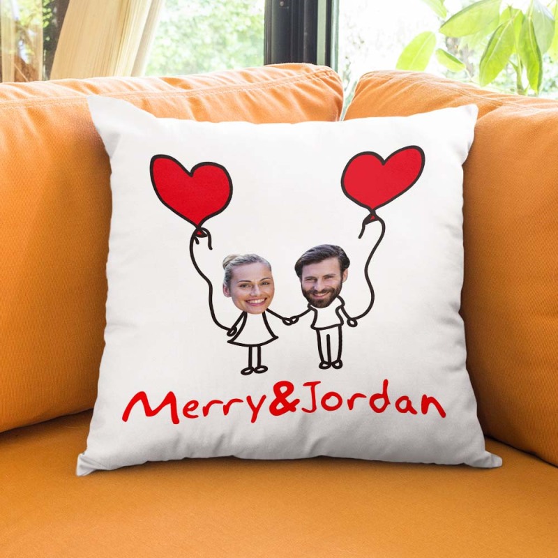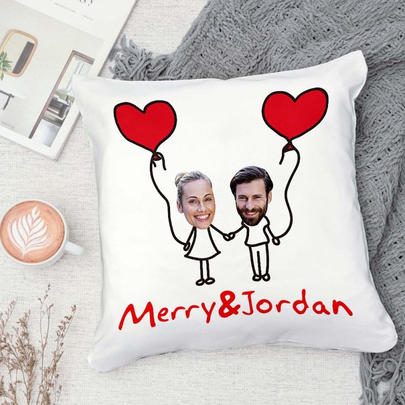 Custom Matchmaker Face Pillow Hand in Hand Personalized Couple Photo and Text Throw Pillow Valentine's Day Gift