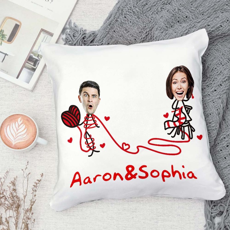 Custom Matchmaker Face Pillow Knitting Sweater Personalized Couple Photo and Text Throw Pillow Valentine's Day Gift