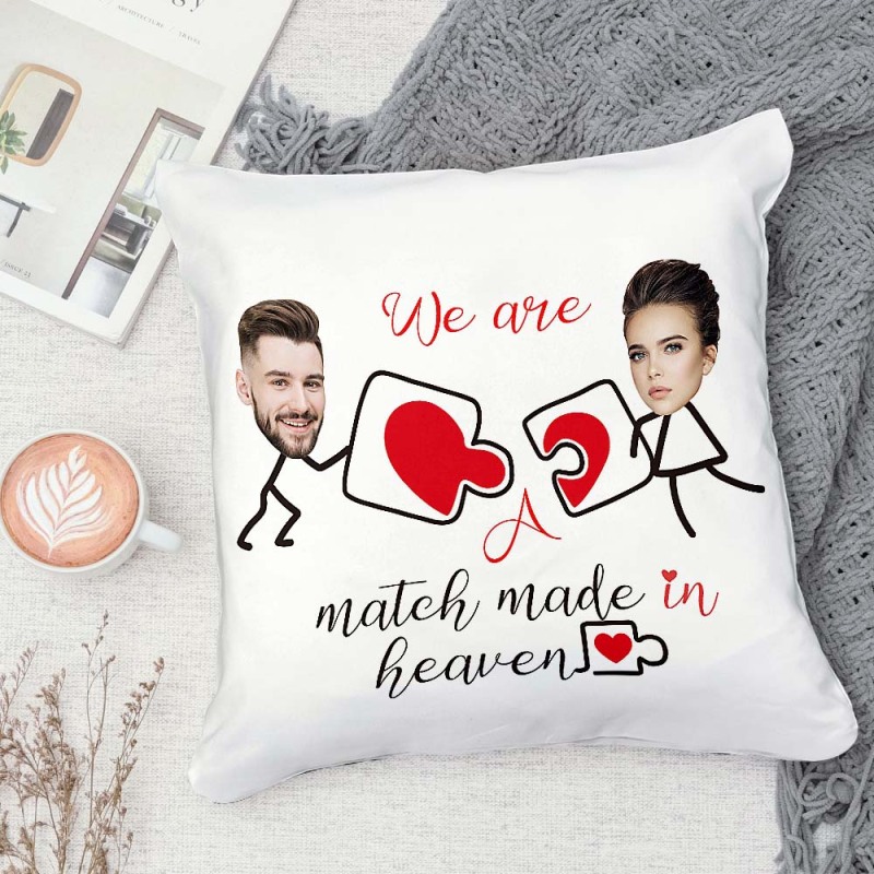Custom Matchmaker Face Pillow Puzzle Personalized Couple Photo Throw Pillow Valentine's Day Gift