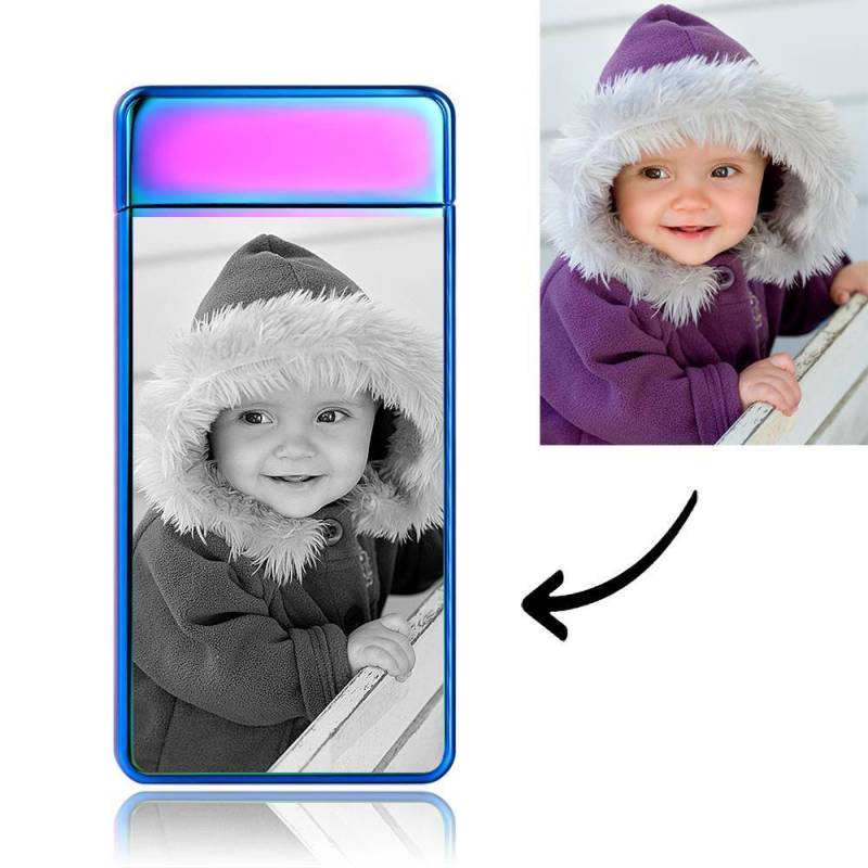 Custom Men's Electric Blue Baby Smile Photo Lighter, Engraved Lighter