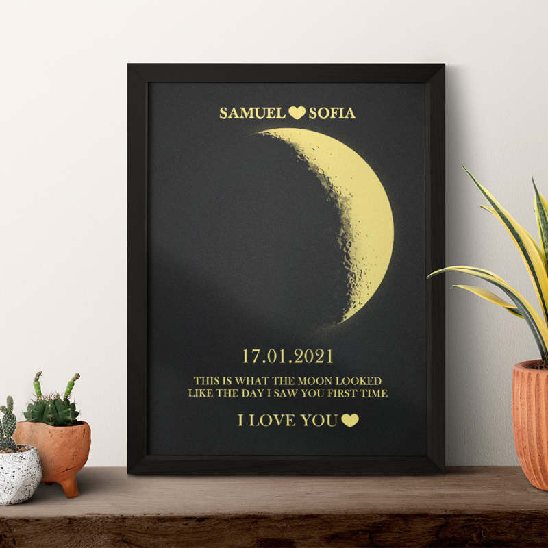 Custom Moon Phase and Names Wooden Frame with Your Text Custom Couple Art Frame Best Gift