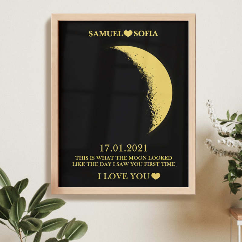 Custom Moon Phase and Names Wooden Frame with Your Text Custom Couple Art Frame Anniversary Gifts